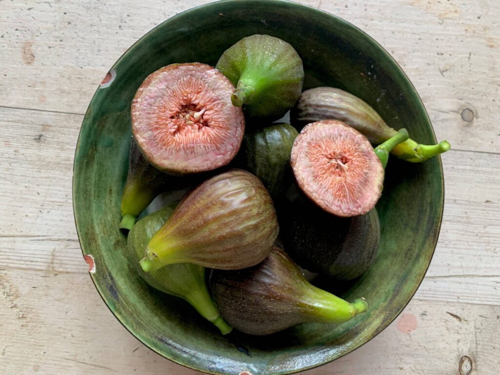 This year we are enjoying a glut of figs. This isn’t always the case as in some years the fig tree in our garden offers us nothing: it still bears fruit, but they never ripen and remain as hard as nuts until they shrivel in the autumn.